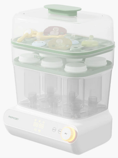 The Momcozy 3 Layers Fast Bottle Sterilizer and Dryer quickly and efficiently sterilizes and dries multiple bottles at once, making daily feeding routines simpler and more hygienic.